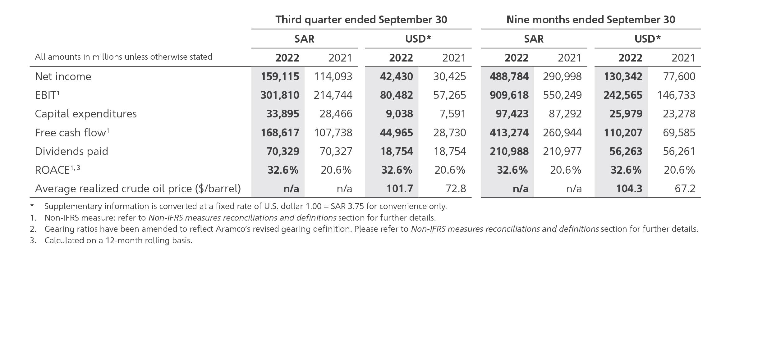 For more information, please see the 2022 Saudi Aramco Third Quarter Interim Report.
